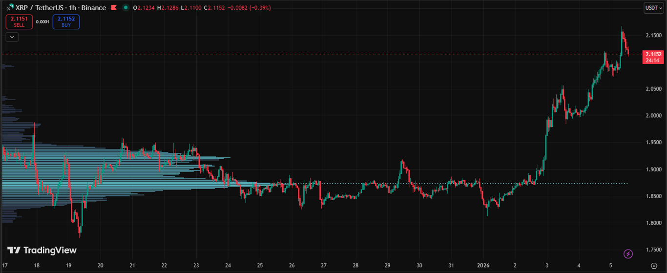 - XRP: One of the top performers, rising to ~$2.09 with gains over 10-12% from late-December levels, thanks to positive regulatory news and steady buying.