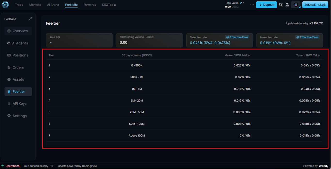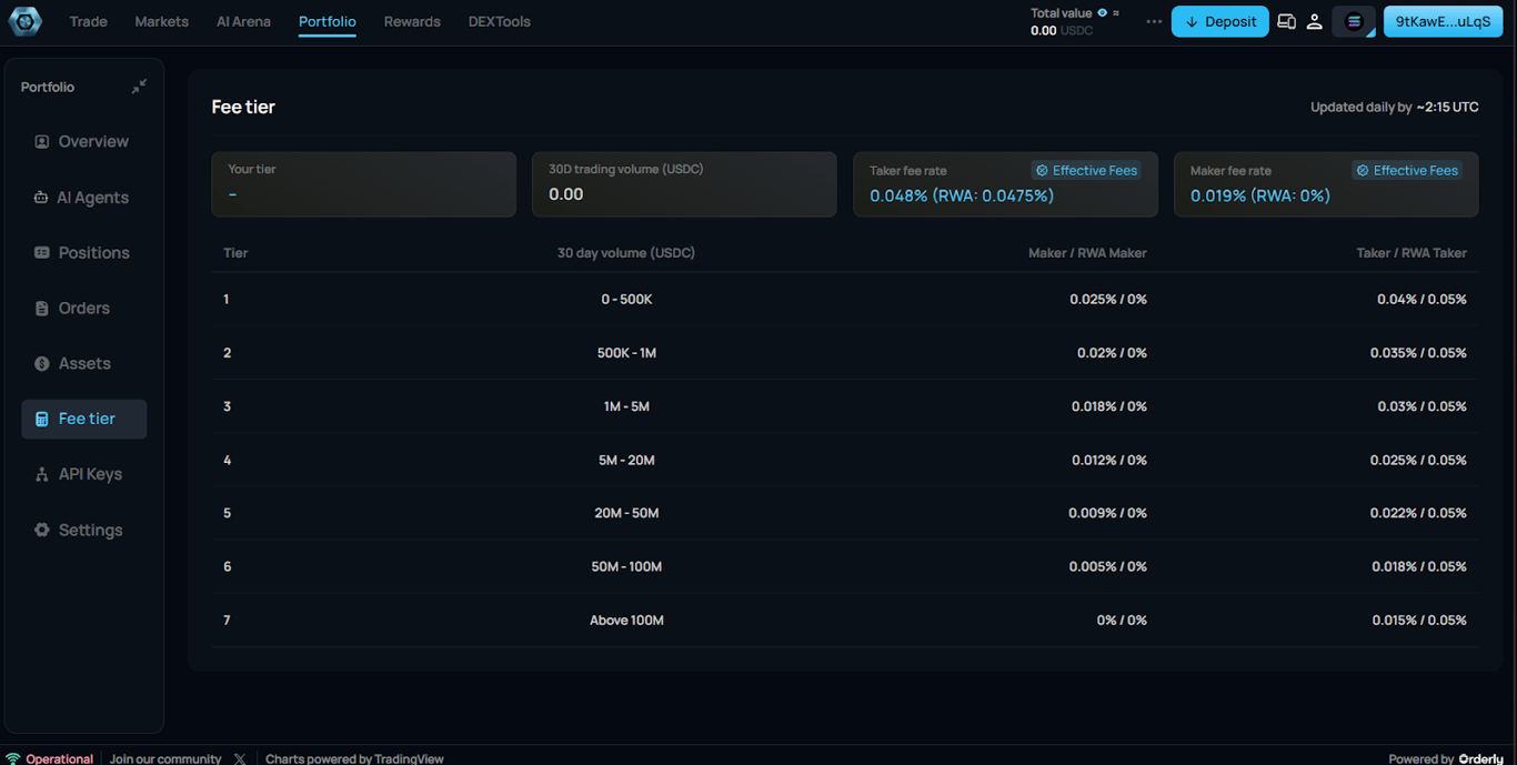 Tier | 30-Day Trading Volume (USDC) | Maker Fee | Taker Fee | How to Use This Tier |