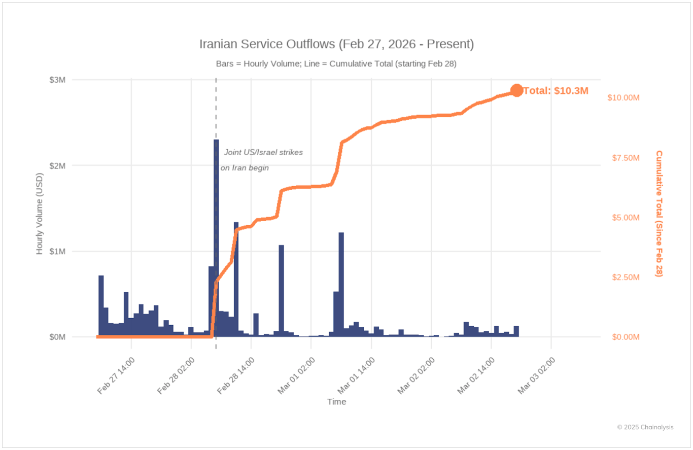 Following escalation, crypto flows out of Iran surged dramatically as individuals sought protection against currency instability. Stablecoins, in this context, functioned as a financial lifeline. This movement highlights crypto’s role as an accessible escape valve during systemic disruption.