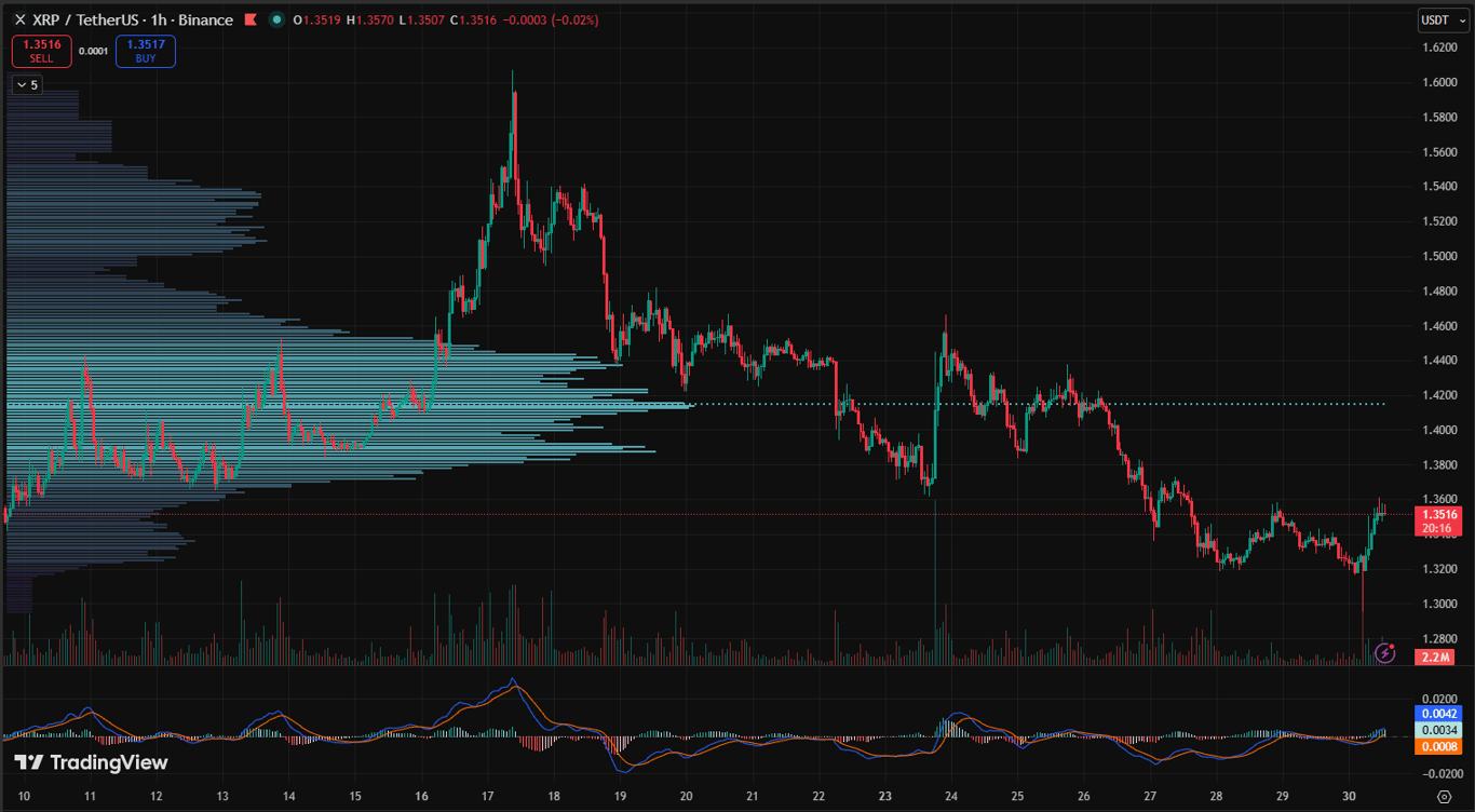 Bitcoin closed the period around $67,288.73 with a daily gain of +0.79% on March 30, though it had fluctuated sharply between roughly $65,000 support and $70,000 resistance levels throughout the week amid geopolitical noise. Ethereum reached $2,042.83 (+1.94% daily), demonstrating slightly stronger relative daily momentum but still tracking broader risk aversion. BNB settled at $616.00 (+0.33%), Solana at $83.50 (+1.05%), and XRP at $1.3518 (+1.14%). All major assets recorded net weekly losses from mid-March highs, with synchronized selloffs mid-to-late week before partial stabilization on March 30. These movements aligned closely with oil price swings and equity market corrections, underscoring crypto’s continued sensitivity to external macro drivers rather than isolated blockchain fundamentals.