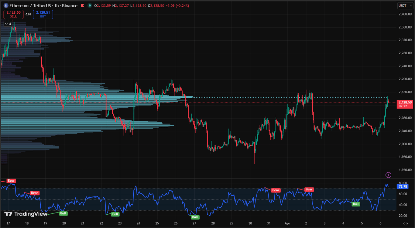 Structure mirrored Bitcoin but with higher beta: strong recovery of +3.85% to $2,134.69 after probing near $2,000. Key levels: resistance $2,150–$2,200; support $2,100. Charts showed synchronized green candles and RSI improvement. Bullish case: continued outperformance if altcoin rotation gains traction. Bearish case: correlation drag if Bitcoin corrects. Bias: constructive short-term. Interpretation: ETH benefited from the broader rebound but still faced ETF outflow pressure.