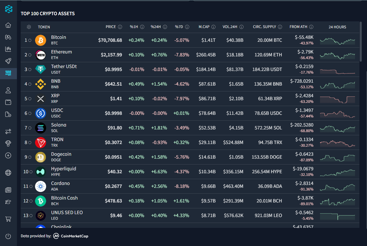 After macro direction forms, capital organizes itself across the market. The Top 100 dashboard on DEXTools reveals how liquidity distributes between major assets in real time. Ranking reflects where capital remains committed rather than where price moves temporarily.
